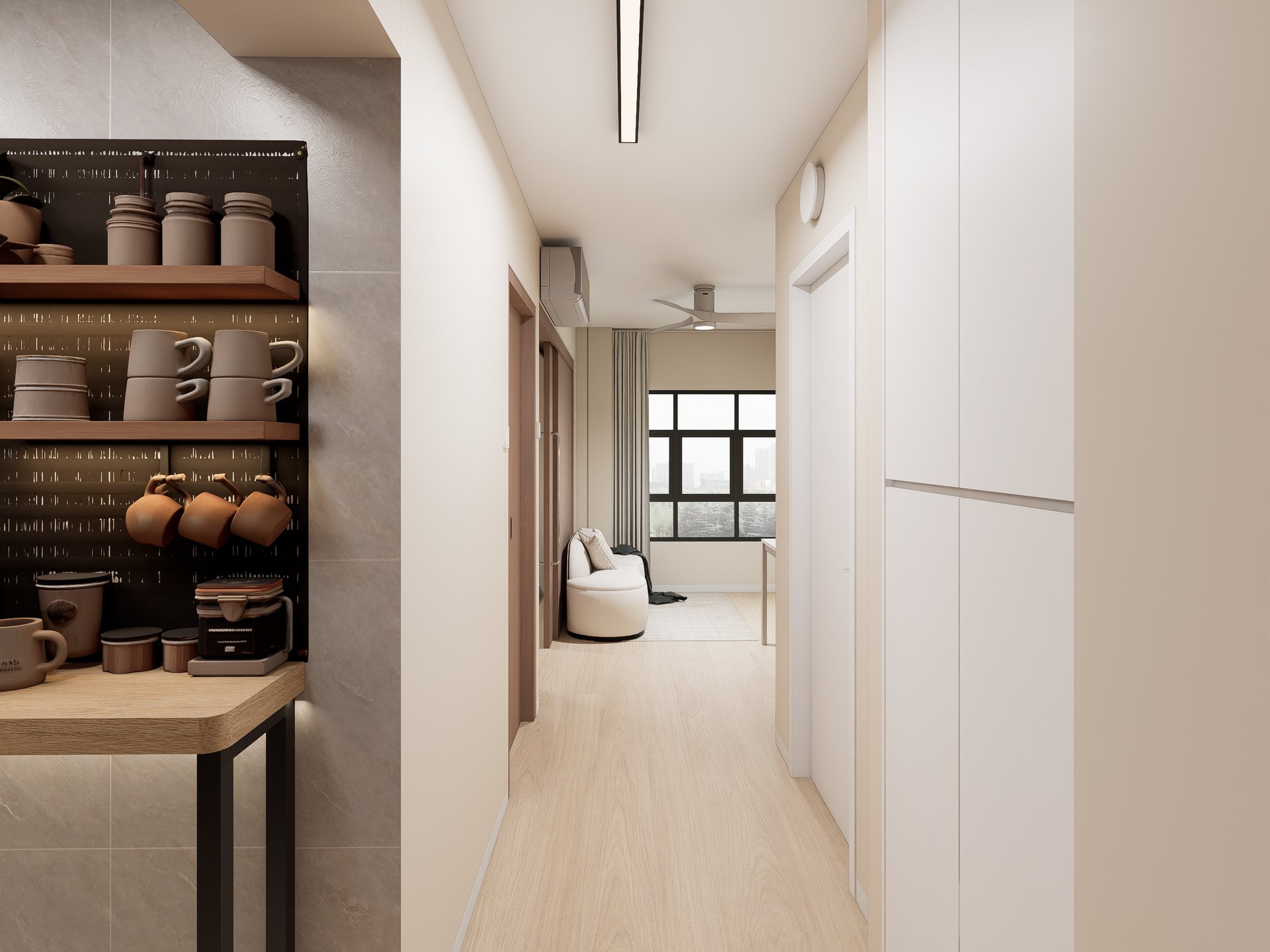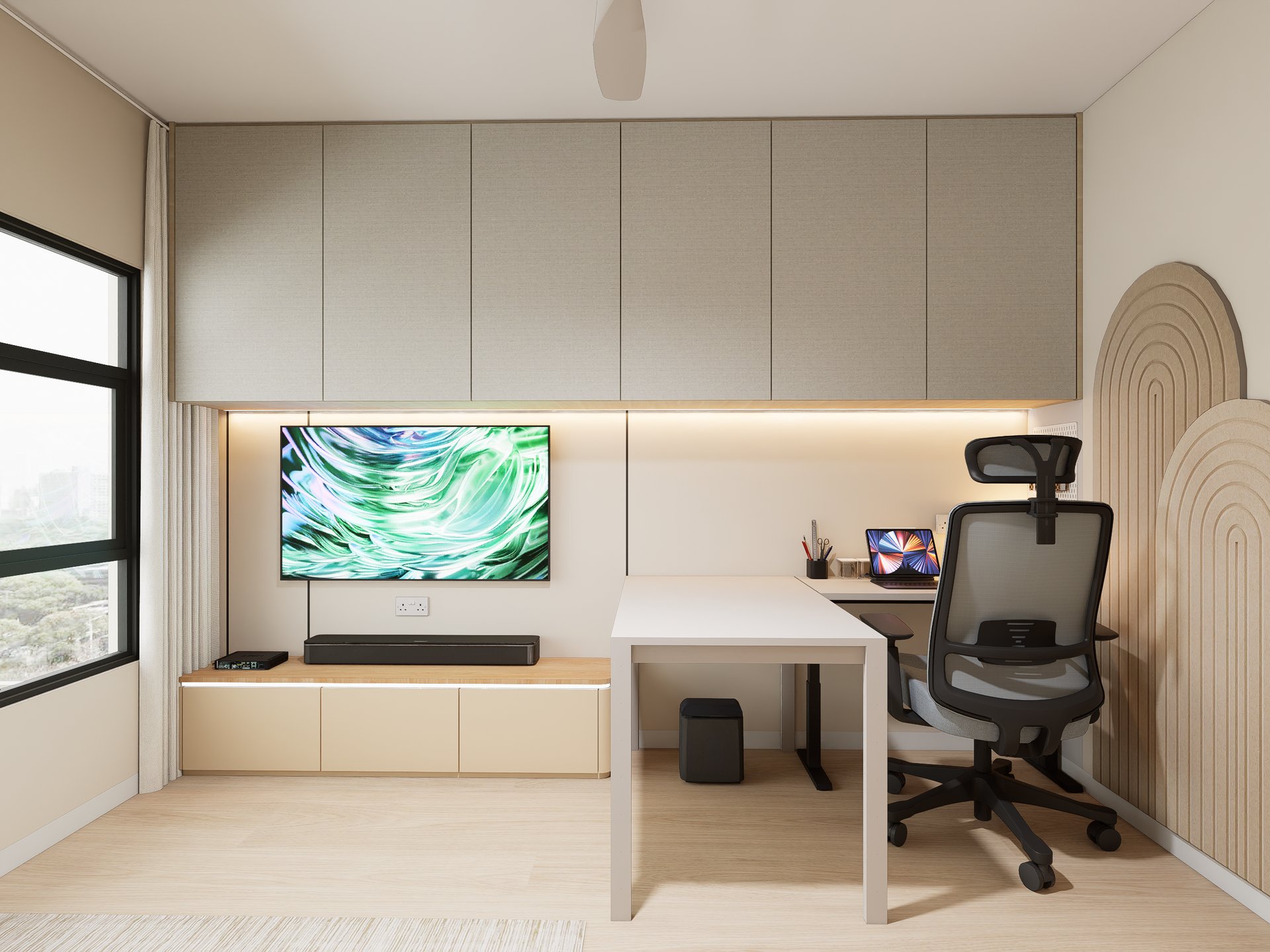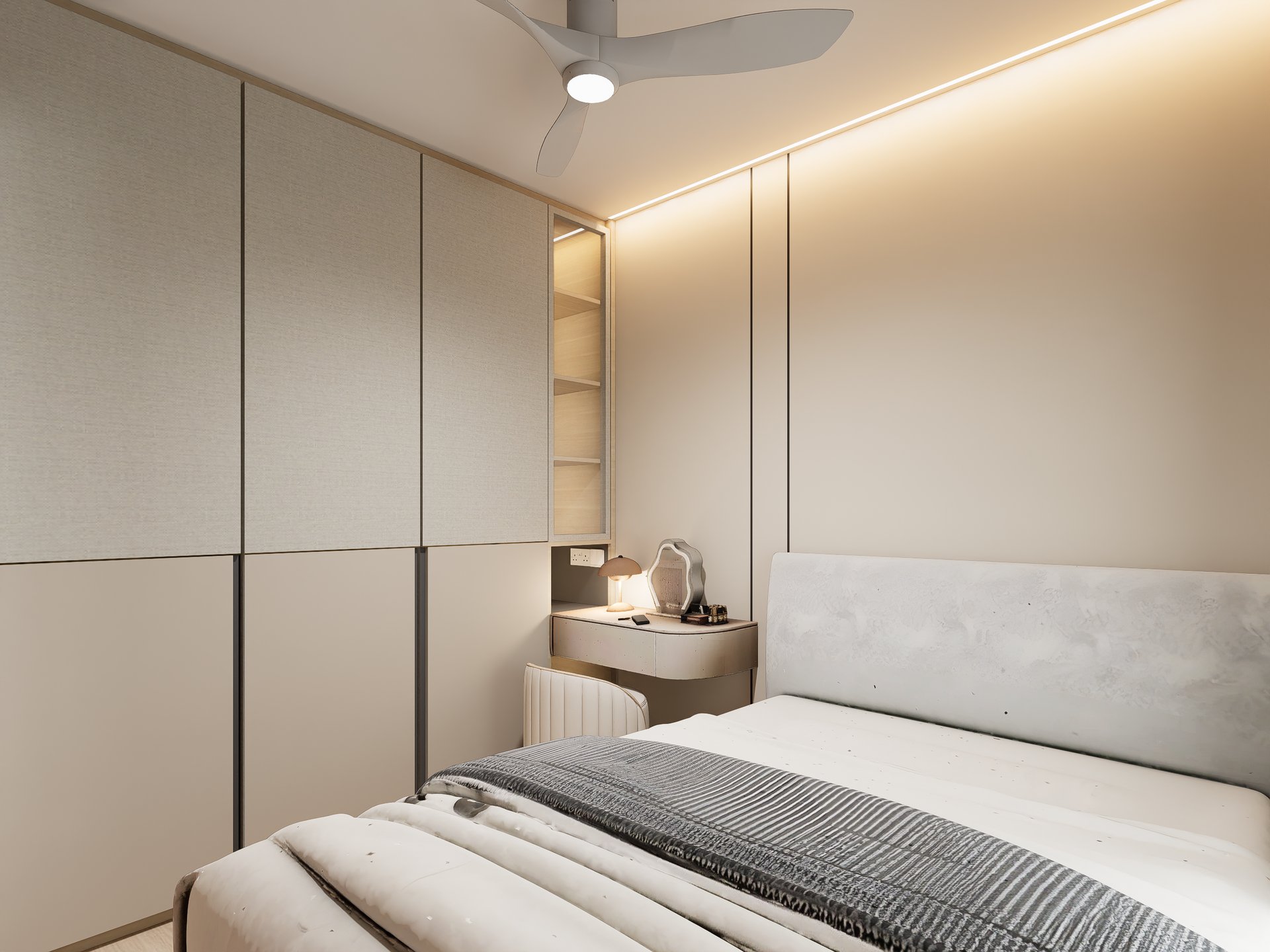 This 2-room flexi unit is designed as a compact, highly efficient home that balances everyday functionality with a clean, modern aesthetic. The layout is streamlined to maximize usable space, with the living, dining, and workspace zones integrated into a single open area that feels both practical and comfortable despite the limited footprint.