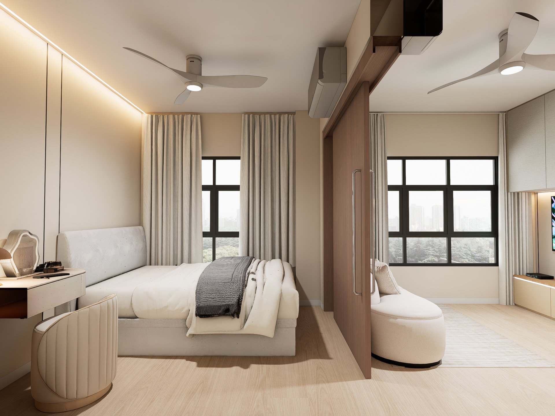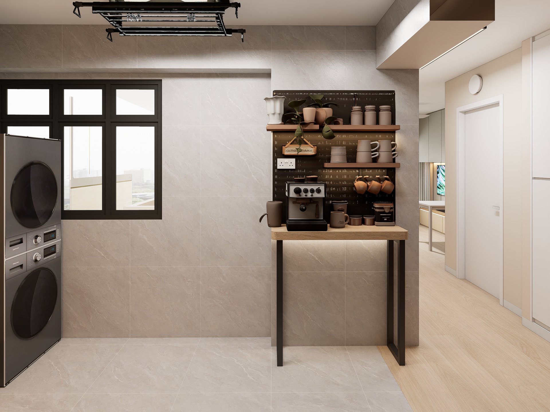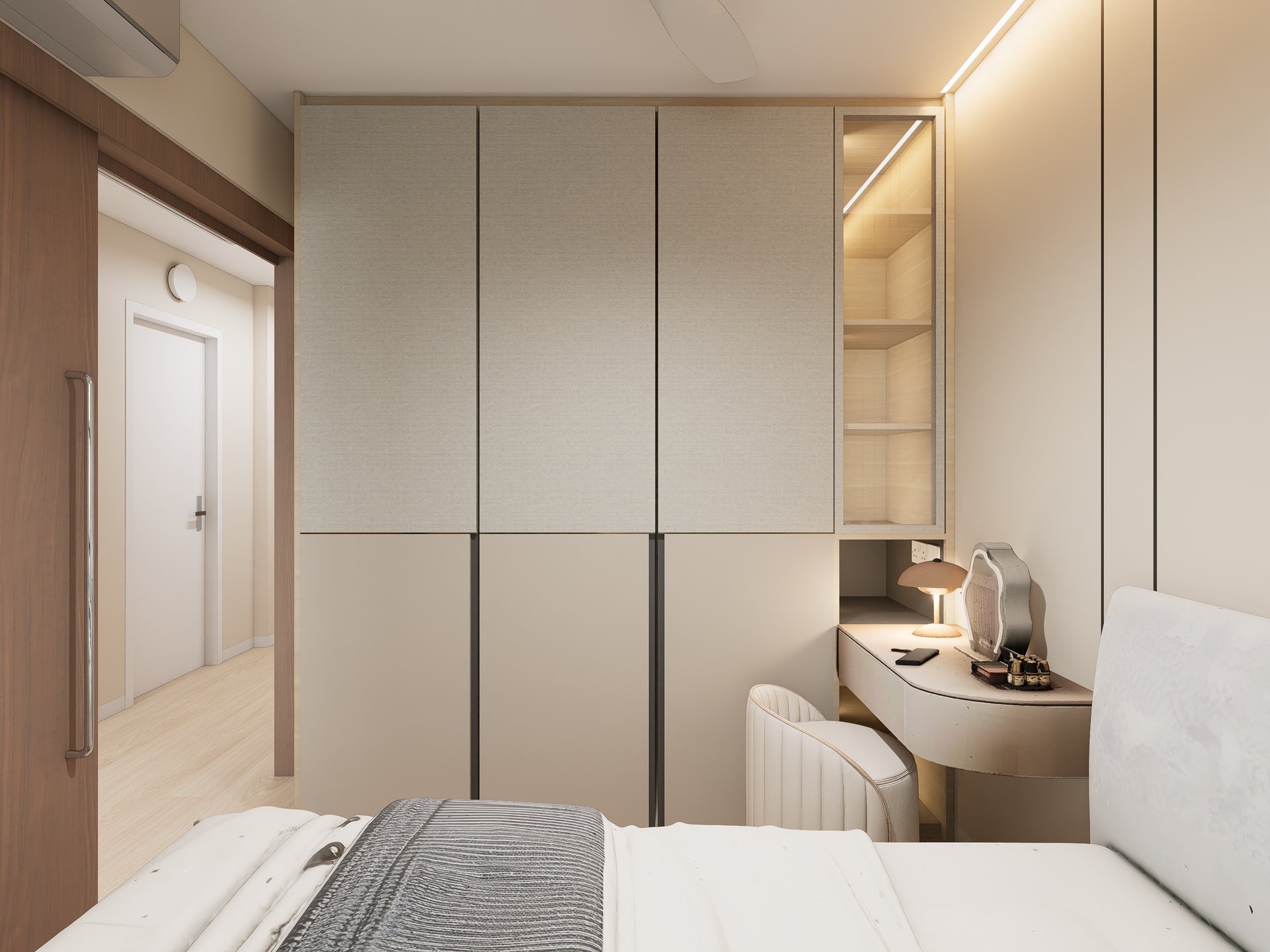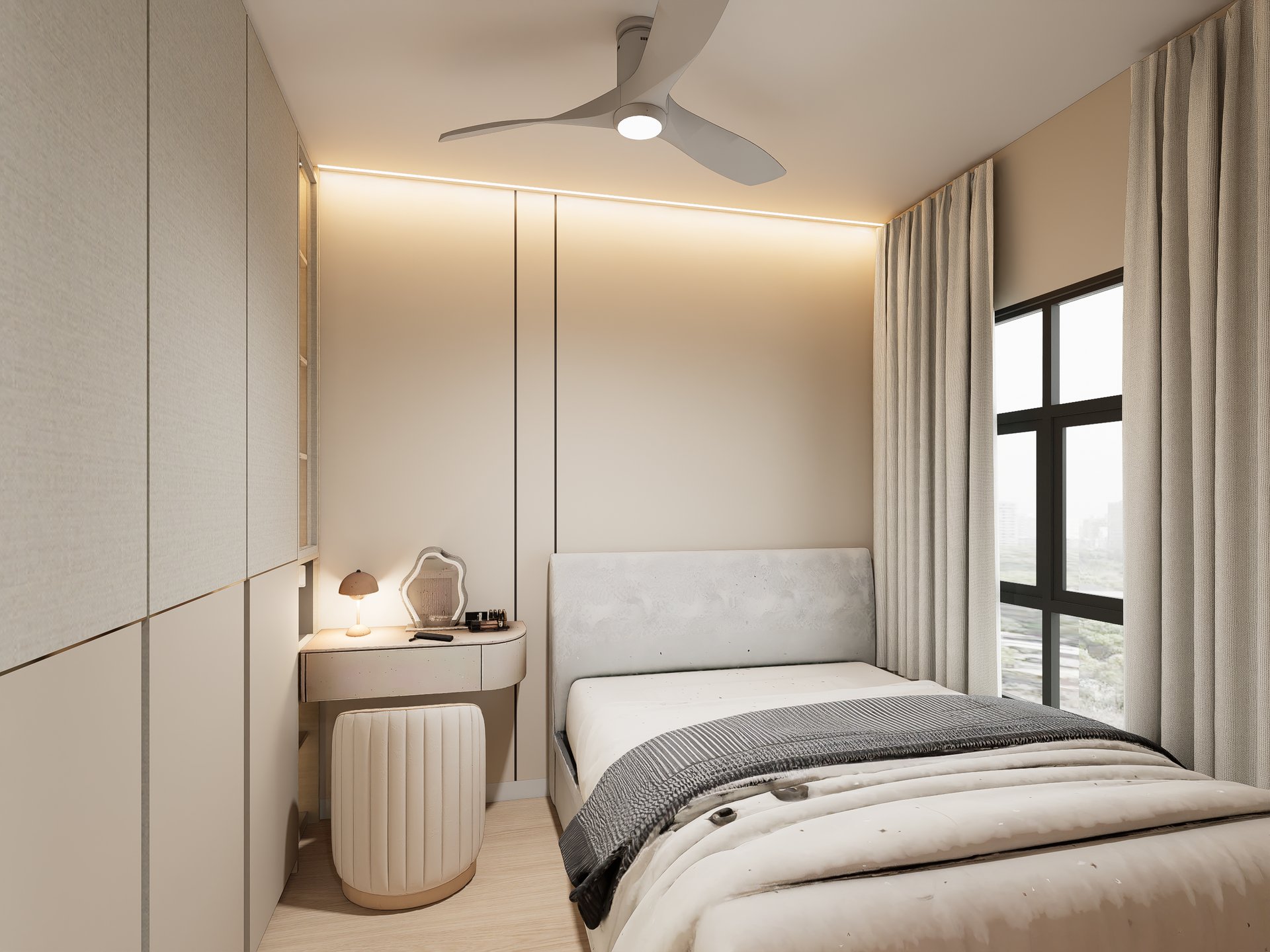 This 2-room flexi unit is designed as a compact, highly efficient home that balances everyday functionality with a clean, modern aesthetic. The layout is streamlined to maximize usable space, with the living, dining, and workspace zones integrated into a single open area that feels both practical and comfortable despite the limited footprint.