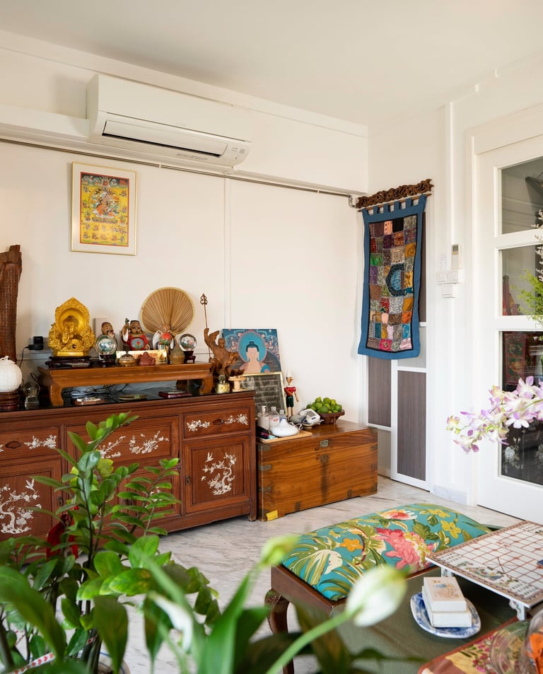 A heartfelt renovation that preserves the soul of a multi-generational homeThis Telok Blangah apartment blends traditional craftsmanship with modern functionality — celebrating family heritage through rich wood tones, curated collectibles, and calm natural
