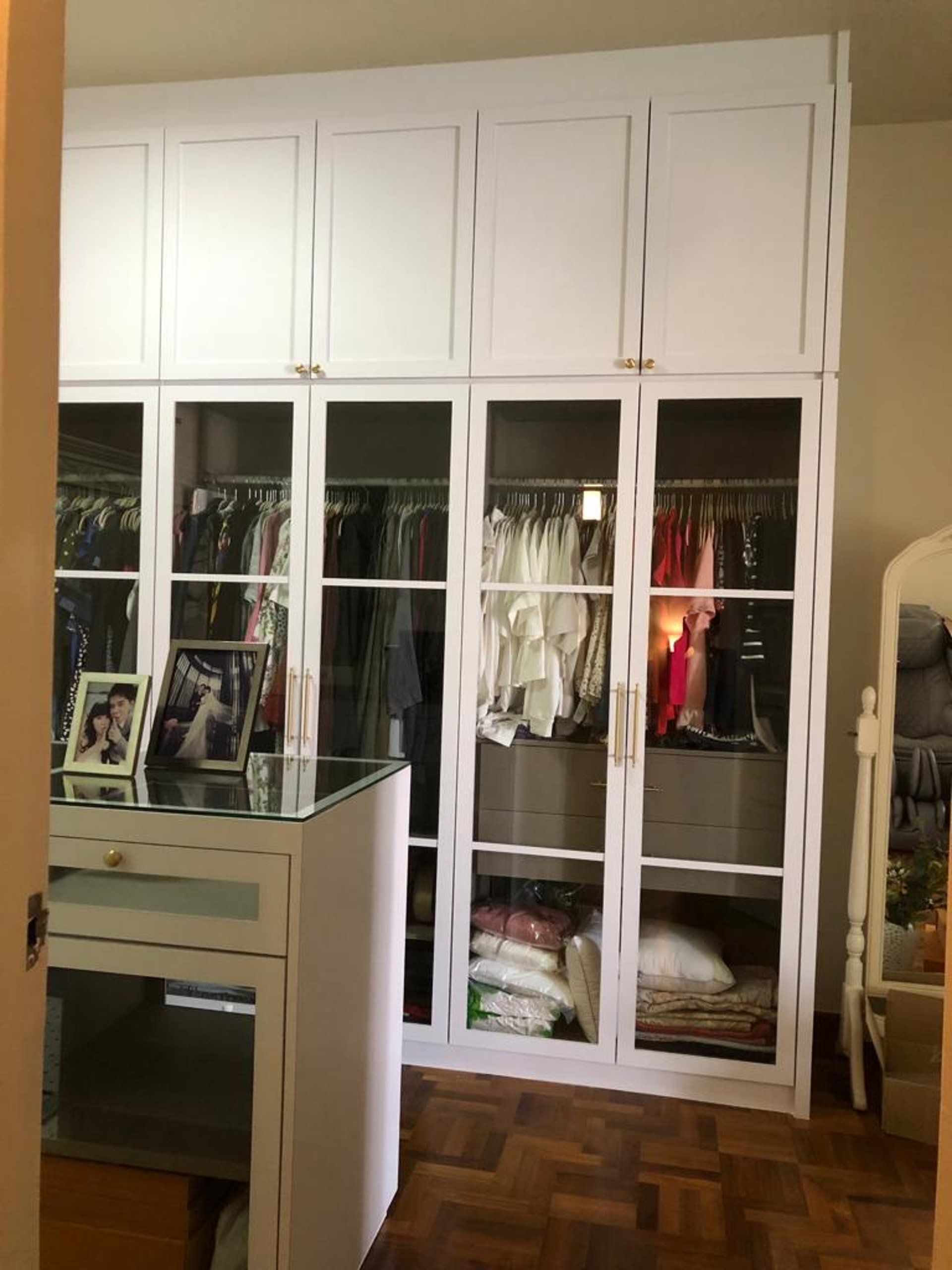 This luxurious walk-in wardrobe at 22 Limau Terrace brings the timeless grace of classic European elegance into a modern home setting. Designed with meticulous attention to detail, the space captures the feeling of a private boutique, where every element exudes sophistication and serenity.